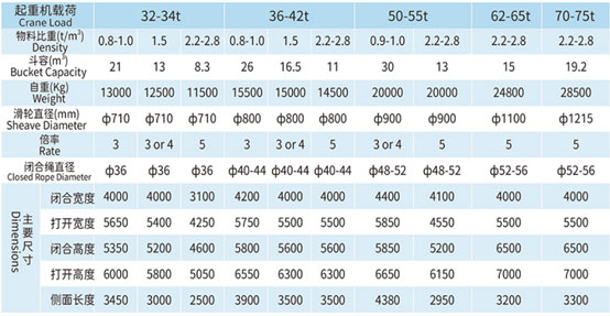 適用于門機、卸船機、行車上,抓取物料比重為0.6-3.2t/m3的散貨。